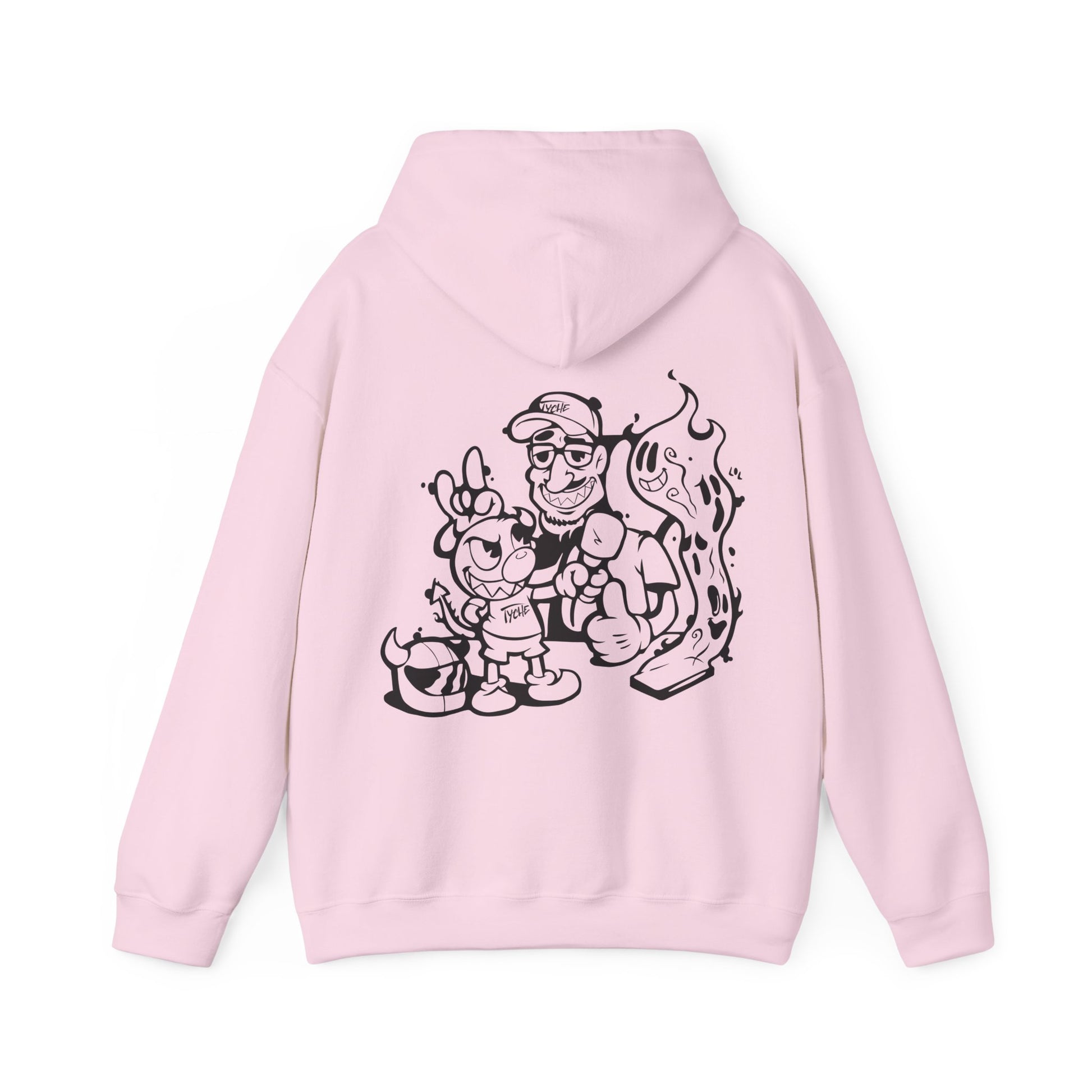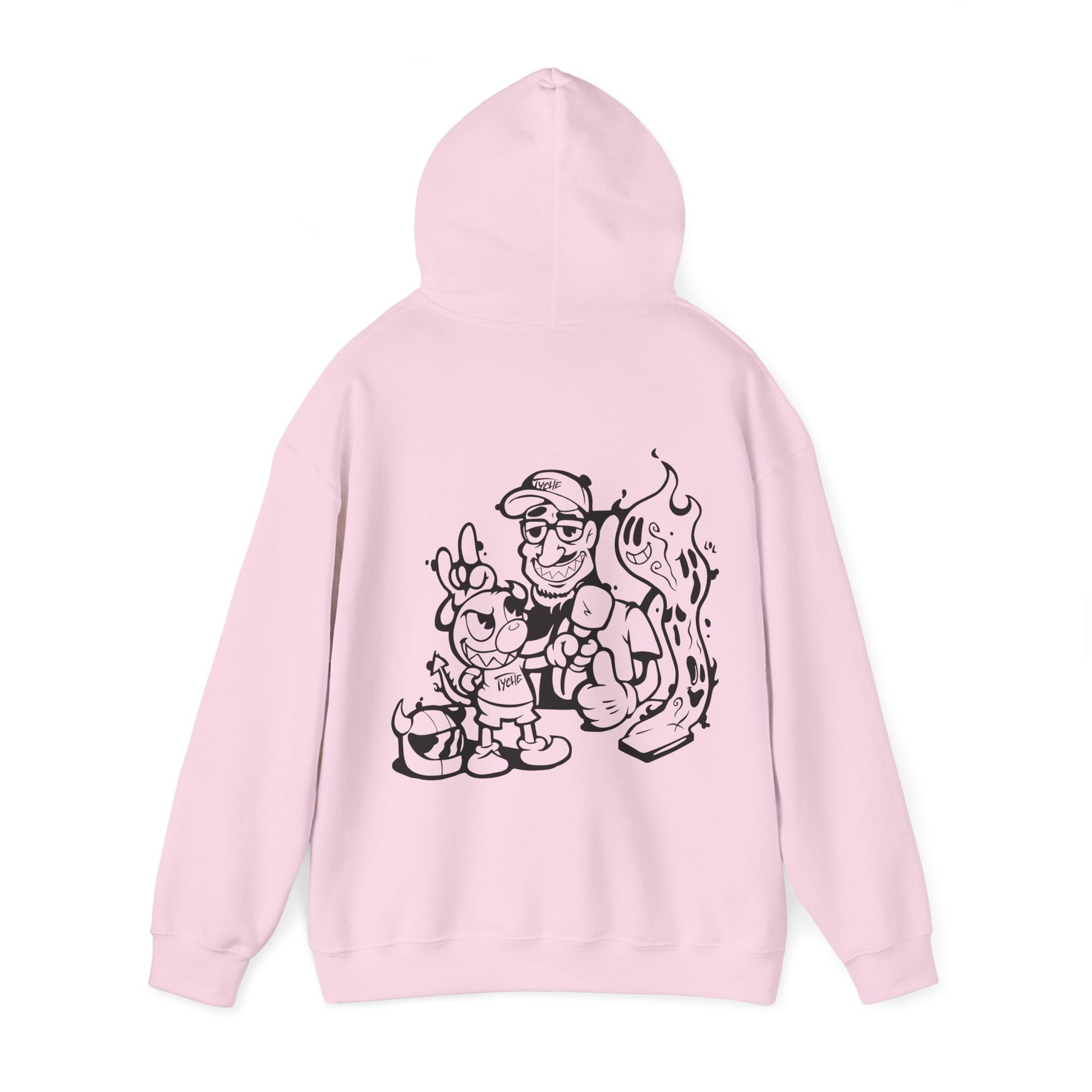 This unisex heavy blend hooded sweatshirt is relaxation itself. Made with a thick blend of cotton and polyester, it feels plush, soft and warm, a perfect choice for any cold day. In the front, the spacious kangaroo pocket adds daily practicality while the hood's drawstring is the same color as the base sweater for extra style points.